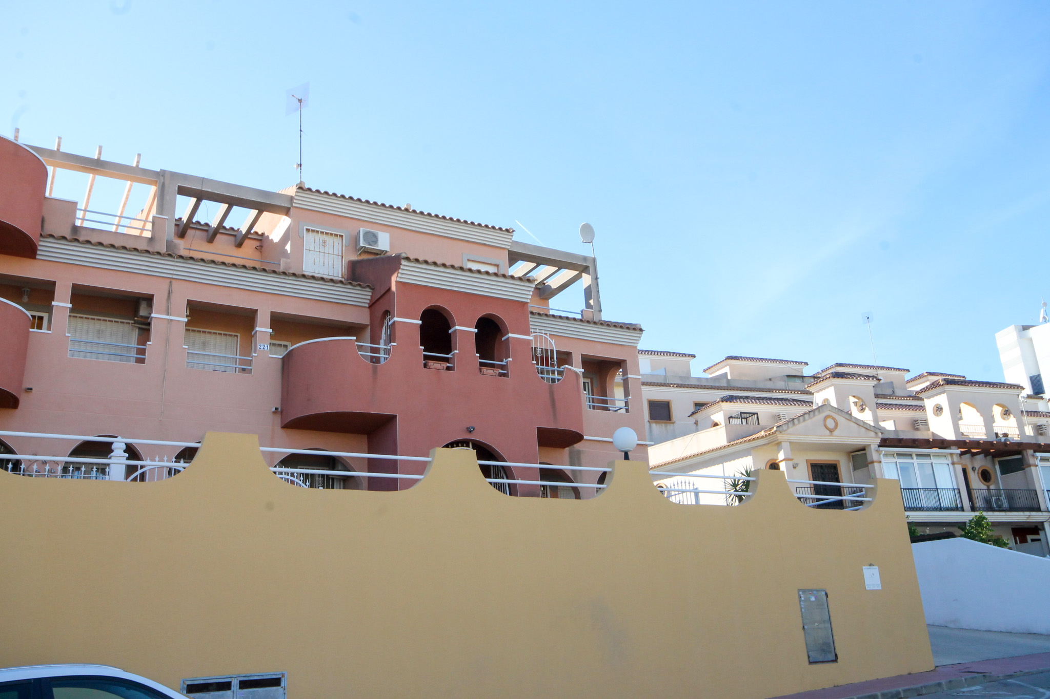 Within walking distance to all amenities, we offer this spacious 3 bedroom corner duplex apartment. This first floor apartment comprises of a terrace into the lounge diner which leads through to a bathroom, double bedroom and the kitchen with an outside galleria. Stairs in the hall lead up to another bathroom and two double bedrooms, the master having patio doors onto a private sunny terrace. A door on the landing accesses another terrace which overlooks landscaped parkland. The apartment also benefits from 2 storage cupboards, air conditioning, is furnished and has use of the lovely communal pool close by. The apartment also has a designated parking space and a locked storage space in the underground garage. La Fuente commercial centre with all its bars, restaurants, pharmacy and shops is just 10 minutes walk away. There are supermarkets in walking distance and the fabulous beaches are only 10 minutes drive away.
